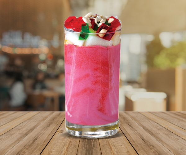 A traditional drink made with red seeds, milk, custard powder, and natural sweetness, offering a smooth and delightful taste.